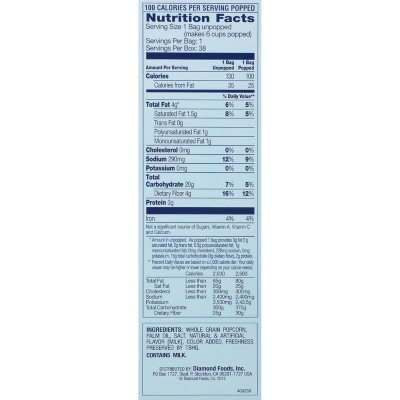 How to read popcorn nutrition label (Pop Secret Homestyle ... - reddit Pop Secret Homestyle Nutrition Label I'm confused here, it says Serving Size is 2 Tbsp Unpopped and makes 3.5 popped. And 3 servings. So 1 bag = 10.5 cups? But who eats popcorn unpopped? So, do I ignore the first column completely and use the 2nd column? For calories in one whole bag, would it be 30 x 10.5 (d/t 3.5 popped x 3) = 315 calories?