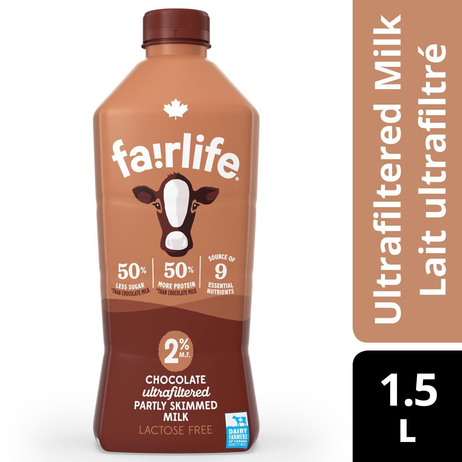 fairlife 2% Chocolate Ultrafiltered Milk 1.5L Bottle - Walmart.ca The milk that loves you back. fairlife 2% Chocolate Ultrafiltered Partly Skimmed Milk has less sugar and more protein than regular milk. 50% less sugar and 50% more protein than chocolate milk. 1.5L bottle, 13g of protein per serving. Proudly made with 100% Canadian Milk.