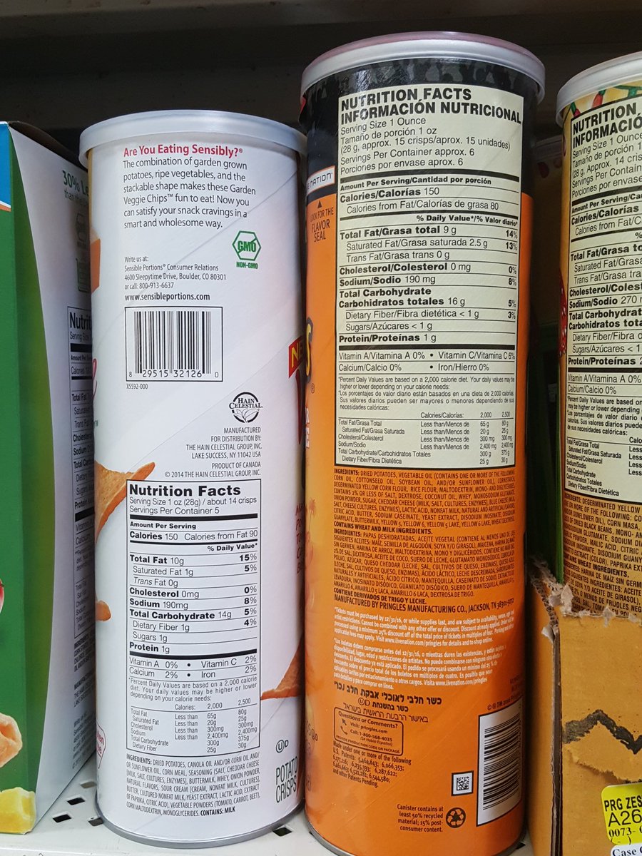 Pringles® The Original - Kellogg's Salt salt and more salt and little black flecks. These Pringles are not what they used to be they should be renamed salty instead of original flavor. The texture is different from back in the day it's not the same recipe. They are so salty they taste disgusting and there are always little black flecks of something in them. Potato Chips Nutrition for Pringles and Baked Lay's | livestrong Feb 11, 2021 · One 1-ounce serving of lightly salted potato chips contains: Calories: 157 Total fat: 9.9 g Saturated fat: 1.5 g Cholesterol: 0 mg Sodium: 52 mg Total carbs: 15 g Dietary fiber: 1.2 g Sugar: 0.1 g Protein: 1.9 g Pringles Nutrition You can find out how many Pringles are in a serving by checking the nutrition facts label.