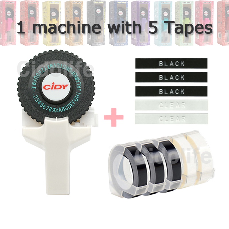 DIY Pembuat LABEL Penulis Pita/Mesin PRINTER EMBOSSING dengan 2 Gulungan 3D Pita Kaset Isi Ulang 9Mm X 3M dan dengan Roda Huruf Font