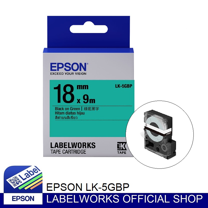 Epson LabelWorks 18Mm Black On Green 9M Label Tape Cartridge Lk-5Gbp