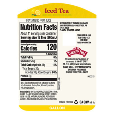 Lipton Iced Tea Nutrition Facts • MyFoodDiary® 29 items ... Nutrition information for Lipton Iced Tea. Track calories, carbs, fat, and 18 other key nutrients. Start your food diary today! Food Club Sweetened Iced Tea 1 gl Feb 4, 2022 ... Nutrition Facts. About 10 serving(s) per container. Serving Size. 12 fl oz (360mL). Amount Per Serving. Calories. 110. % Daily Value ...